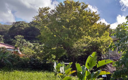 大浦湾はじみ山原おいいくる行ちゅしが、くまんかいイチョウぬ木ぬ生いとおんでえ、分からんたん。写真ぬ真ん中ぬ木がうりやん。抜じゃしえ、11月半らやたしが、黄色んかいやなてえ居らな、未だ青ってんどぅそおたる。暑ちゃさどぅあくとぅ、うりん当たい前。やしが、何時が紅葉ないらあ。沖縄んかいや、モクマオウ、、綿ぬ木、ギンネムんでえ、余所から色んな木草ぬ入っち来、大概や、栄てえとおん。やしがくぬイチョウぬ木や100年やか前に鹿児島から3本、持ち来ゃんでぃぬ事やしが、今あ、ちんとぅ1本どぅ残とおる。1本やてぃん、イチョウが沖縄んじん育ちゅんでぃぬ徴やい、なあふぃん、うゎあち、何時かあ、イチョウ並木ん見じゅる事ぬないれえ良たさしが…。筆:比嘉清。語句説明→他サイトブログへ行きます。