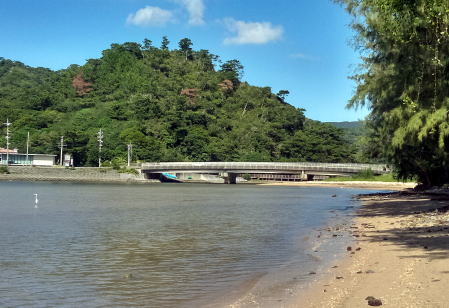 くぬ橋え1960年ぬチリ大しがり波ぬ寄してぃ来ゃるばす、壊さったんでぃぬ事やん。うんにいや、沖縄ぬ東むてぃいぬ海岸やいいくるしがり波ぬ上がてぃ来ゃあに、我小学校ぬ庭迄、海水に浸かとおたん。うぬ日、高所んかいあたる自ぬ家から学校んかい向かゆる道中、下あらから生徒ん達が戻てぃ来ゅうる生徒ん達が、「しがり波ぬ来ょおくとぅ、学校や休み」んでぃち、むさげえとおたん。くまぬ二見橋え、大浦湾ぬんかいあん。湾や狭くないるうっさ、しがり波ぬ集まてぃ来ゅうくとぅ、うりが押し寄しゆるi勢いん又強くなゆん。今ぬ橋えでえじな頑丈ぎさし造らっとおしが、如何ぬあたいぬ耐力があぬむぬやら。何やらわん、自然ぬ力あ、人ぬ思寄いやか上やあらに。筆:比嘉清。語句説明→他サイトブログへ行きます。