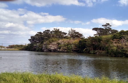 くぬ写真ぬんかいある小堀や何小堀がやら。近頃出来たる勝連城址公園ぬ駐車場ぬ東北ぬまんぐらんかいあん。我が生りゆる前からあたる筈やくとぅ、昔からあたる筈。うぬ広さからしいねえ、地図んかあてぃん済むる筈やしが、載てえ居らんふうじ(ヤフーマップ)。首里城んかい龍潭池ぬある如、くぬ小堀んいん又、勝連城ぬ備わいむんぬ一ちがやたら知らん。調びらってぃん居いがすらん分からん。勝連城が整備さっとおしえ、近頃どぅやい、阿麻和利が滅ぶさってぃからあ、空城けえなやい、捨てぃ放りいどぅさっとおたる。昔通いに復た興しならんしえ、分かゆしが、いふぃんやてぃん、昔ぬ有様んき似しゆる如、考えたい思励たいしいねえ、正門ぬある所とぅかん又変ゆる筈やるむぬ。筆:比嘉清。語句説明→他サイトブログへ行きます。